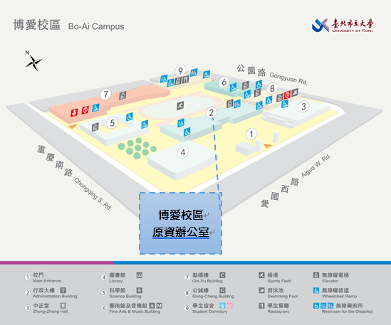 1.天母校區辦公室位於 行政大樓2樓(學務處裡) 2.博愛校區辦公室位於 行政大樓1樓(學務處裡)